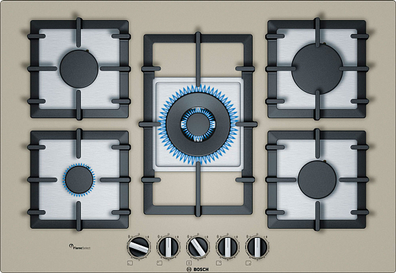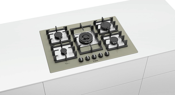 Газовая варочная панель Bosch PPQ7A8B90 на 5 конфорки, шириной 75.2 см, кварц