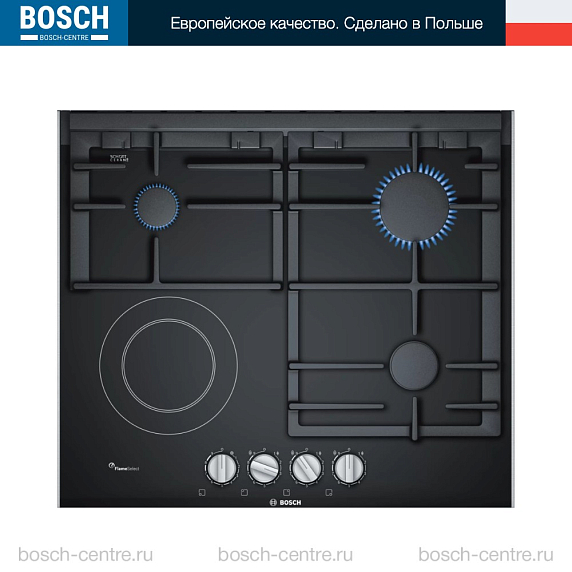 Комбинированная варочная панель Bosch PRY6A6B70Q на 3 конфорки, шириной 60.6 см, черный