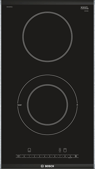 Электрическая варочная панель Bosch PKF375FP1E на 2 конфорки, шириной 30.6 см, черный
