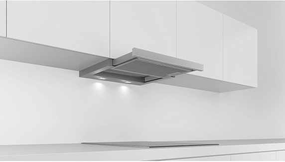 Монтаж в шкаф в вытяжках Bosch — это элегантное решение для встраиваемых кухонь. Вытяжка полностью или частично скрывается внутри навесного шкафа, сохраняя единый стиль интерьера. Корпус встраивается в мебель, а управление и воздухозабор остаются доступными. Подходит для рециркуляции и отвода воздуха. Требует точной подготовки шкафа, но обеспечивает максимальную эстетику и функциональность.