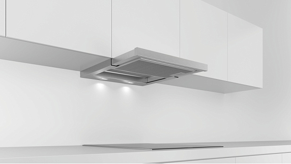 Монтаж в шкаф в вытяжках Bosch — это элегантное решение для встраиваемых кухонь. Вытяжка полностью или частично скрывается внутри навесного шкафа, сохраняя единый стиль интерьера. Корпус встраивается в мебель, а управление и воздухозабор остаются доступными. Подходит для рециркуляции и отвода воздуха. Требует точной подготовки шкафа, но обеспечивает максимальную эстетику и функциональность.