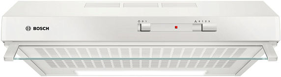 Козырьковая вытяжка Bosch DUL 62FA20 — компактная модель белого цвета, которая крепится к стене или в подвесной шкаф. Особенность — жировой фильтр из нетканого синтетического материала, который можно стирать вручную. Производительность до 230 м3/ч позволяет эффективно очистить небольшую кухню от запахов и загрязнений.