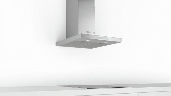 Каминная вытяжка Bosch DWB67CM50 для настенного монтажа убережет мебель в кухне от жира и копоти.
