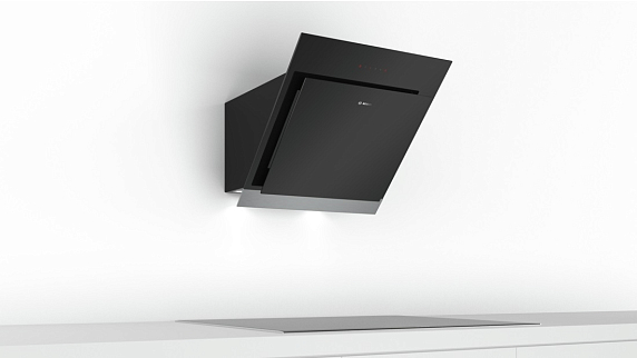 Наклонная вытяжка Bosch DWJ 67HM60 хорошо впишется в интерьер кухни в стиле хай-тек.