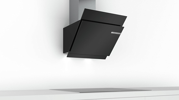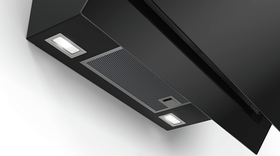 Наклонная вытяжка Bosch DWK 67JM60 — мощный и тихий прибор, который эффективно очищает воздух и может работать в режимах отвода и рециркуляции.