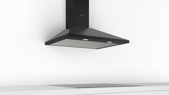 Вытяжка Bosch DWP96BC60 выполнена в классическом черном цвете.
