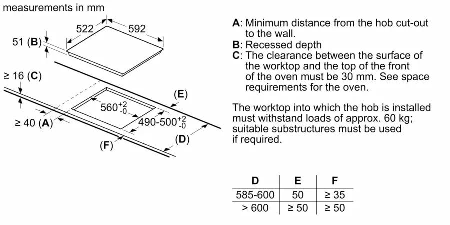 Схема встраивания 4 для варочной панели Bosch PUE612BB1E