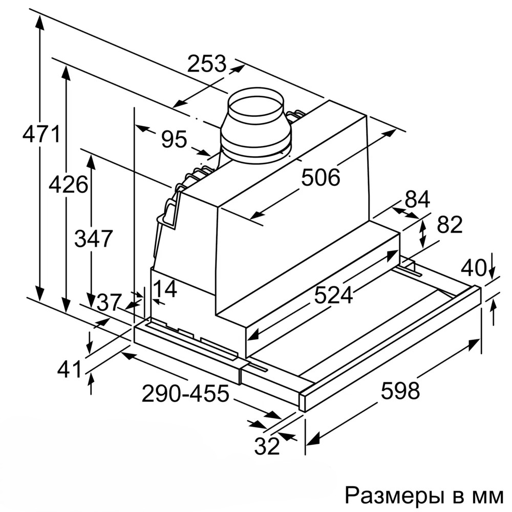Схема встраивания 1 для кухонной вытяжки Bosch DFS067K51