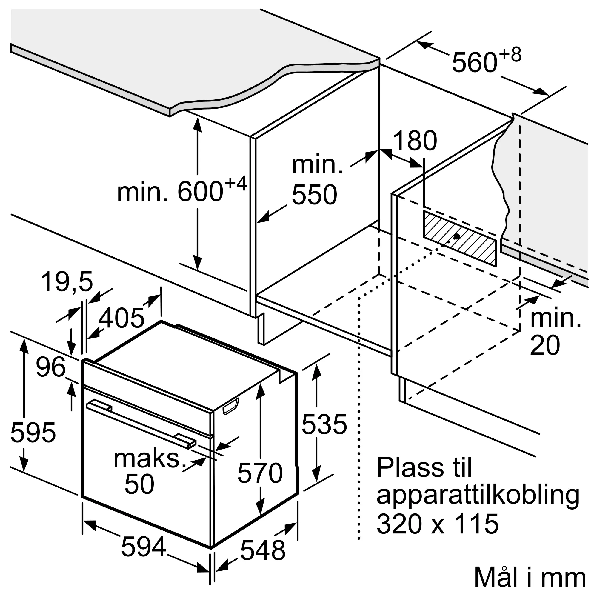 Схема встраивания 1 для духового шкафа Bosch HBA472BB3