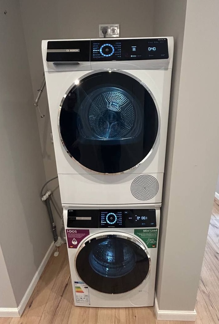 Приобрёл эту сушилку и сразу оценил её множество полезных функций. Во-первых, вместимость до 9 кг позволяет сушить сразу большую партию белья, что очень удобно для семьи. Отдельностоящая конструкция и классический белый цвет легко вписались в интерьер ванной комнаты. Сенсорное управление с TFT-дисплеем оказалось очень удобным — всё понятно и наглядно, даже можно выбрать программу с помощью функции «моя программа». Особенно понравилась технология с тепловым насосом, которая экономит электроэнергию и бережно относится к вещам. Наличие 14 программ сушки — это просто находка: есть режимы для хлопка, синтетики, деликатных тканей, спортивной одежды и даже пуховиков. Для меня важна функция AutoDry, которая автоматически определяет оптимальное время сушки, чтобы вещи не пересушивались. Также есть режим Allergy Plus, который отлично подходит для людей с чувствительной кожей. Очень удобно, что можно отложить старт до 24 часов — это помогает планировать домашние дела. Материал барабана из нержавеющей стали с LED-подсветкой позволяет видеть процесс сушки и обеспечивает долговечность. Встроенный инверторный двигатель работает тихо и эффективно. Контейнер для конденсата легко опустошается, а возможность подключения к канализации избавляет от лишних хлопот. Самоочищающийся конденсатор и ворсовый фильтр поддерживают машину в чистоте без дополнительного ухода. Безопасность тоже на высоте: есть защита от детей и дизайн, снижающий вибрации и шум. Класс энергопотребления В и мощность менее 1 кВт делают эксплуатацию экономичной. Функция Home Connect через Wi-Fi позволяет управлять сушилкой дистанционно — это очень удобно, когда занят или не дома. В общем, эта сушильная машина стала незаменимым помощником в быту. Она сочетает в себе продуманный функционал, экономичность и простоту использования. Рекомендую всем, кто хочет качественно и бережно сушить одежду без лишних хлопот!