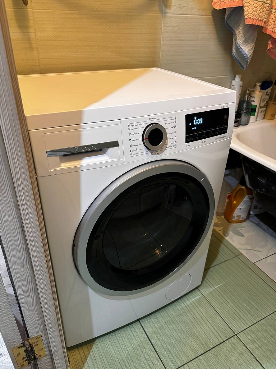 Стиральная машина Bosch WLS28460ME из серии Serie 4 стала для меня настоящей находкой. Прежде всего, впечатлила её тихая и плавная работа даже на высоких оборотах — отжим на 1400 об/мин проходит практически бесшумно, что особенно ценно в квартире, где важен комфорт для всех членов семьи. Отдельного восхищения заслуживает система ActiveWater: она автоматически подбирает объём воды в зависимости от загрузки и типа ткани, что позволяет экономить ресурсы без ущерба для качества стирки. Многофункциональный LED-дисплей делает управление интуитивно понятным — я всегда вижу, сколько времени осталось до окончания программы, и могу легко скорректировать настройки. Также оценила надёжную защиту от протечек и автоматическую блокировку люка: чувствую себя спокойно, особенно когда в доме есть маленькие дети.