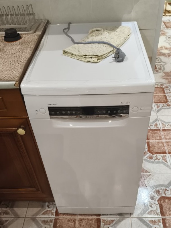 Я — мужчина, который не особо любит стоять у раковины с губкой, поэтому покупка этой посудомойки была решением давней проблемы. Bosch SPS4EMW24E отлично вписалась в интерьер кухни (белый корпус с черной панелью выглядит лаконично и современно), а главное — реально облегчила быт. Особенно ценю функцию автооткрывания дверцы в конце цикла: она не только ускоряет сушку, но и предотвращает появление затхлого запаха внутри. Машина надёжная, интеллектуальная и удобная в повседневном использовании. Если вы ищете узкую, но вместительную (10 комплектов!) модель с продуманным функционалом — эта Bosch точно стоит внимания. За полгода эксплуатации ни разу не пожалел о покупке.
