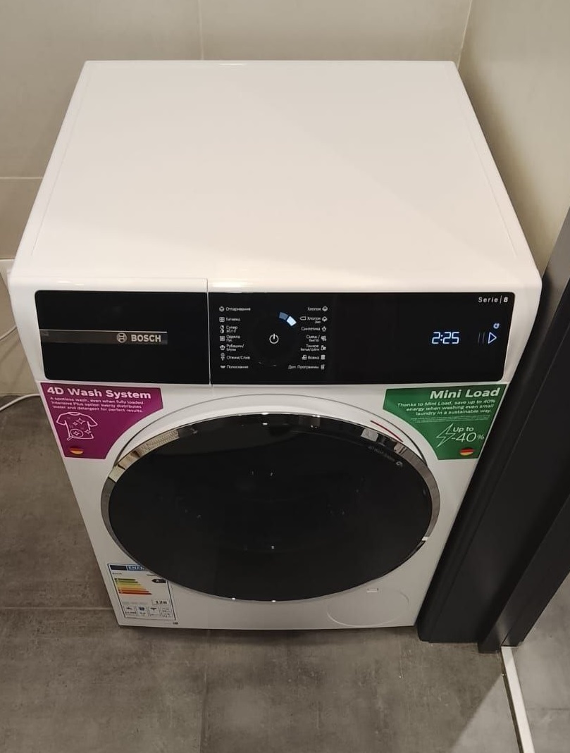 Хочу отдельно сказать о тишине работы — даже на 1400 оборотах в минуту машинка работает удивительно тихо, почти не слышно вибрации. Это особенно ценно, так как у нас стиральная установлена в общей зоне, рядом с кухней. Благодаря функции подавления дисбаланса и качественной сборке, отжим проходит плавно и без «прыжков» по полу. Также радует, что машина сама регулирует количество воды и порошка в зависимости от загрузки и типа ткани — это экономит не только ресурсы, но и моё время. В целом, это одна из лучших покупок, которые я совершала за последние годы. Bosch Serie 8 — это не просто техника, а настоящий помощник, который берёт на себя заботу о чистоте и порядке в доме. Смело рекомендую!