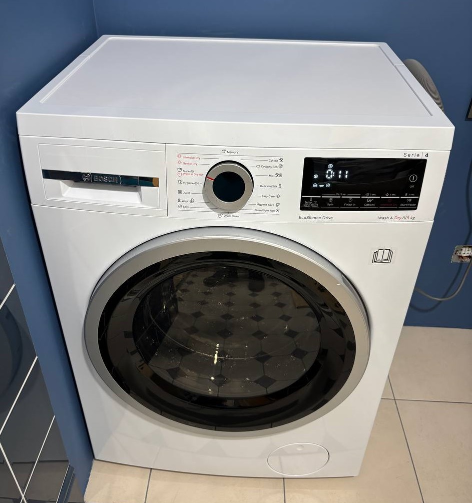 Как мама двоих детей и хозяйка, ценящая каждую минуту, я безмерно довольна выбором! Bosch WDS28460ME стала настоящим спасением в быту. Программа «Стирка&Сушка» — это волшебство: загрузила мокрое бельё вечером, а утром достаю идеально высушенные вещи, без перекладывания, без развешивания по батареям. Особенно ценно в дождливую осень или зимой! Отложенный старт на 24 часа позволяет запускать машину ночью по выгодному тарифу, а к утру — свежее, тёплое бельё готово к использованию. Бережная сушка для шерсти, шелка и даже пуховиков работает безупречно: любимый свитер не сел, пуховик сохранил объём и не скомкался. Функция SpeedPerfect спасает, когда нужно быстро освежить одежду перед выходом. Управление — сплошное удовольствие: сенсорные кнопки, поворотный переключатель, понятный LED-дисплей с таймером. А ещё трогает внимание к деталям: очистка барабана, контроль пены, индикация времени — чувствуешь, что техника заботится о тебе и о твоих вещах.