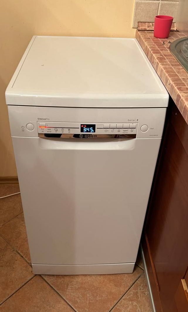 Bosch SPS2HMW54Q — это надёжное, продуманное решение для тех, кто ценит качество и практичность. Машина узкая, но при этом вмещает до 10 комплектов посуды — более чем достаточно для семьи из 3–4 человек. Проточный нагревательный элемент быстро доводит воду до нужной температуры, а система ActiveWater адаптирует её расход в зависимости от загрузки, что делает эксплуатацию действительно экономичной. Установка прошла без проблем, интерфейс интуитивно понятный даже без инструкции. Белый корпус отлично вписался в интерьер кухни — выглядит стильно, но без излишеств. В целом, за свои деньги это один из лучших вариантов на рынке: техника не просто моет посуду, а делает это тихо, бережно и тщательно. Смело рекомендую к покупке!