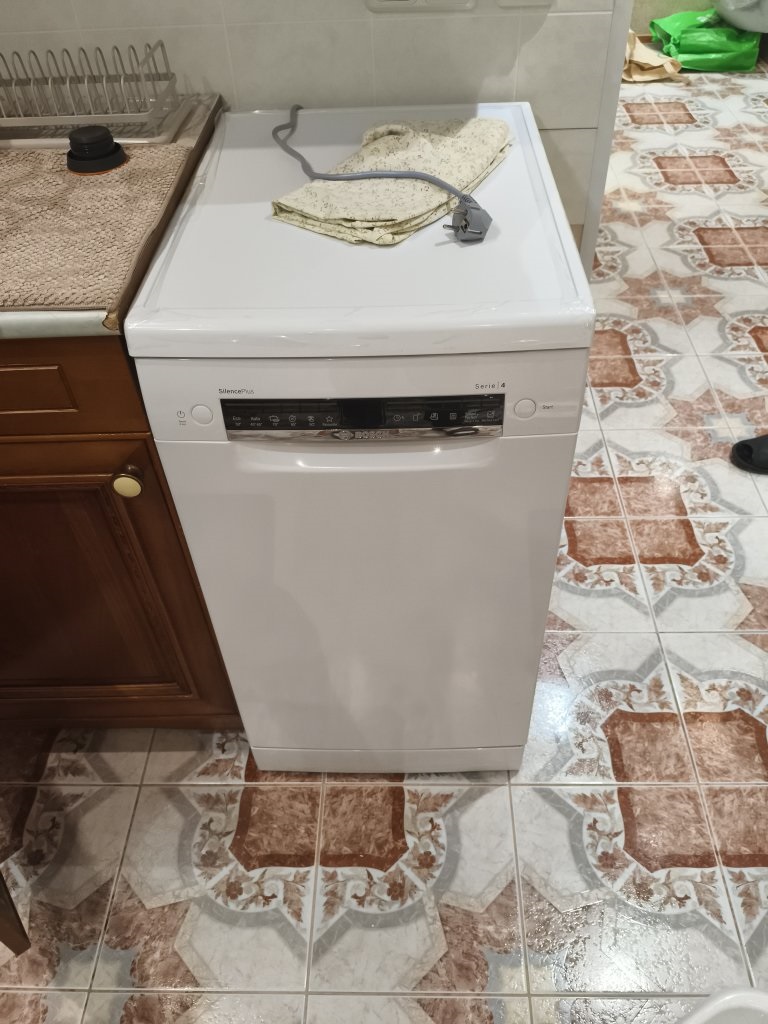 Я — мужчина, который не особо любит стоять у раковины с губкой, поэтому покупка этой посудомойки была решением давней проблемы. Bosch SPS4EMW24E отлично вписалась в интерьер кухни (белый корпус с черной панелью выглядит лаконично и современно), а главное — реально облегчила быт. Особенно ценю функцию автооткрывания дверцы в конце цикла: она не только ускоряет сушку, но и предотвращает появление затхлого запаха внутри. Машина надёжная, интеллектуальная и удобная в повседневном использовании. Если вы ищете узкую, но вместительную (10 комплектов!) модель с продуманным функционалом — эта Bosch точно стоит внимания. За полгода эксплуатации ни разу не пожалел о покупке.