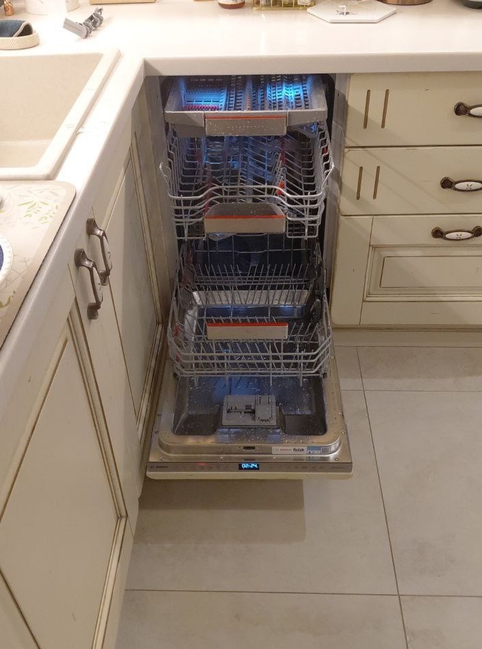 О, как же я долго мечтала о такой посудомоечной машине! Она не просто моет посуду, она делает это быстро, эффективно и очень тихо. Никакого шума и лишних звуков, что особенно важно, когда дети спят. Даже ночью можно запустить ее и не бояться проснуться от шума. Также меня порадовало наличие различных программ. Можно выбрать экономичную, если посуды немного, или интенсивную, если нужно хорошенько помыть кастрюли после приготовления ужина. И все это можно настроить через приложение на смартфоне, что очень удобно! Качество мойки просто на высоте! Все чисто, блестит, нет никаких разводов и пятен. И это при минимальном расходе воды и электроэнергии. А еще есть функция предварительного ополаскивания и дополнительного полоскания. И все это в узком корпусе, который идеально вписывается в мою кухню. В общем, я очень довольна этой покупкой. Это не просто посудомоечная машина, это помощник, который экономит мое время и силы!