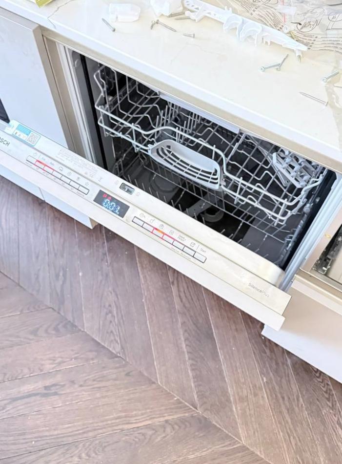 Эта посудомоечная машина Bosch стала настоящим открытием для нашей семьи из четырех человек. Больше всего впечатлил режим автооткрывания дверцы в конце цикла — посуда высыхает идеально без разводов, даже пластиковые контейнеры и стаканы с узким горлышком. Раньше приходилось протирать всё вручную, а теперь просто выдвигаю корзину спустя час после окончания программы — и вся посуда сухая и блестящая. Очень ценю тихую работу благодаря инверторному двигателю EcoSilence Drive: запускаю машину вечером после ужина или даже ночью — ни разу не разбудила мужа или детей. Функция SpeedPerfectPlus стала моей палочкой-выручалочкой: когда нужно быстро вымыть посуду перед приходом гостей, за 58 минут получаем чистые тарелки без компромиссов по качеству. А луч InfoLight на полу — гениальное решение! Вижу по красной точке, что машина работает, и не открываю дверцу случайно в неподходящий момент. Управление через приложение тоже оказалось удобнее, чем ожидала: ставлю старт на ночь, когда тарифы на электричество ниже, а утром уже ждет чистая посуда.