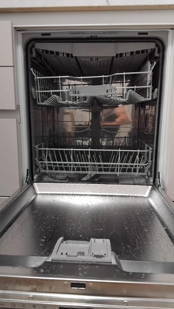 Сложно назвать что-то по-настоящему негативным — машина работает стабильно и надёжно. Если говорить о нюансах, то, пожалуй, стоит отметить, что режим «Ночная мойка» действительно тихий, но занимает почти 3,5 часа, и если вы не планируете заранее, можно проспать начало цикла. К тому же, хотя программа «Экономичная» и экономит воду, она требует предварительного смывания сильных загрязнений — если просто загрузить тарелки с засохшим соусом, результат будет неидеальным. Но это не недостаток самой машины, а скорее особенность использования — и я сама привыкла к этому. Также, хотя автоматическое открытие дверцы после завершения цикла — это круто, иногда влажный пар немного поднимается и оставляет следы на верхних шкафах, если они расположены слишком близко. Но это решается просто — я просто открываю дверцу вручную через 10 минут после окончания, и всё идеально.