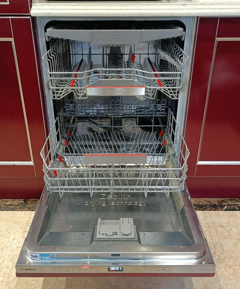 Пользуюсь этой встроенной машиной несколько недель и очень благодарна за то, как она упростила будни. У нас маленький ребёнок, и уровень шума около 42 дБ позволяет запускать ночную программу, не нарушая сна. Часто готовлю для семьи и друзей — функция SpeedPerfectPlus выручала, когда нужно было быстро отмыть тарелки после обеда. Цеолитная сушка действительно лучше справляется со стаканами и ложками, они выходят сухими и без разводов, а бережная программа для стекла при 40°C сохранила пару хрупких бокалов, которые раньше оставались пятнистыми.