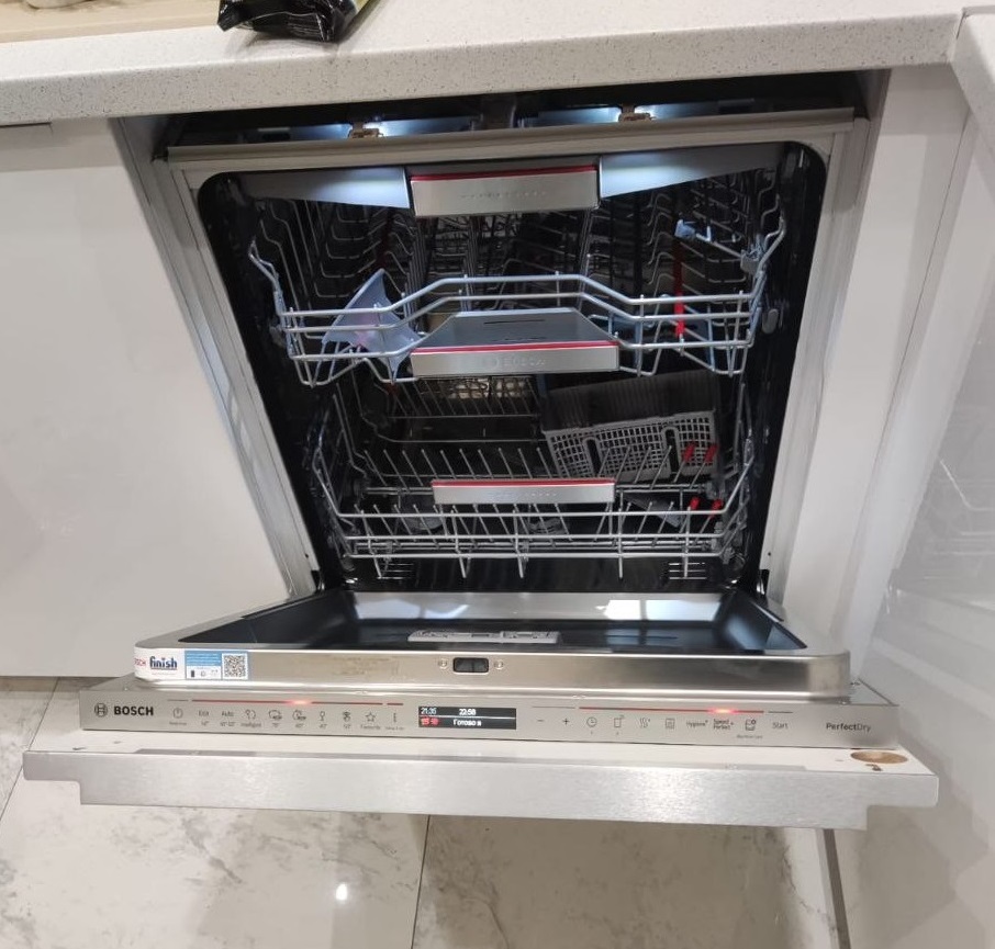 Покупал эту модель после долгих сравнений и не пожалел ни разу. Bosch SMV8YCX02E — это сочетание немецкого качества, продуманного функционала и энергоэффективности. Особенно ценю, что можно сохранить «Мою программу» — настроил один раз под свои предпочтения, и теперь не трачу время на выбор режима каждый раз. Машина отлично вписалась в кухонный гарнитур, панель управления выглядит солидно и стильно. Уход за техникой минимален благодаря самоочищающемуся фильтру и автоматической регенерации воды. Если вы ищете надёжную, тихую и эффективную посудомойку для большой семьи — эта модель однозначно стоит своих денег. Рекомендую без колебаний.