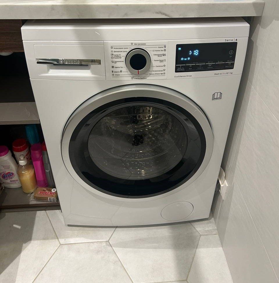 Я долго выбирала между обычной стиральной машиной и комбинированным вариантом, и покупка Bosch WDS28460ME серии 4 стала одним из лучших решений для нашего дома. Больше всего мне нравится технология VarioPerfect, которая позволяет выбирать между экономией времени (SpeedPerfect) или электроэнергии. Когда дети возвращаются из школы в грязной форме, функция ускоренной стирки становится настоящим спасением, позволяя получить чистые вещи почти вдвое быстрее без потери качества. Очень радует система защиты от протечек: зная, что у меня многоступенчатая защита, я могу спокойно уходить из дома, запустив отложенный старт на ночь или на время своего отсутствия, используя таймер до 24 часов. Барабан из нержавеющей стали бережно относится к тканям, а контроль пенообразования и подавление дисбаланса гарантируют, что даже деликатные вещи останутся целыми. Дизайн машины лаконичный и стильный, белый цвет отлично сочетается с любым интерьером. В целом, это надежная, умная и эстетичная помощница, которая берет на себя максимум бытовой рутины, оставляя мне больше времени для отдыха и семьи. Рекомендую всем, кто ценит пространство, тишину и немецкое качество.